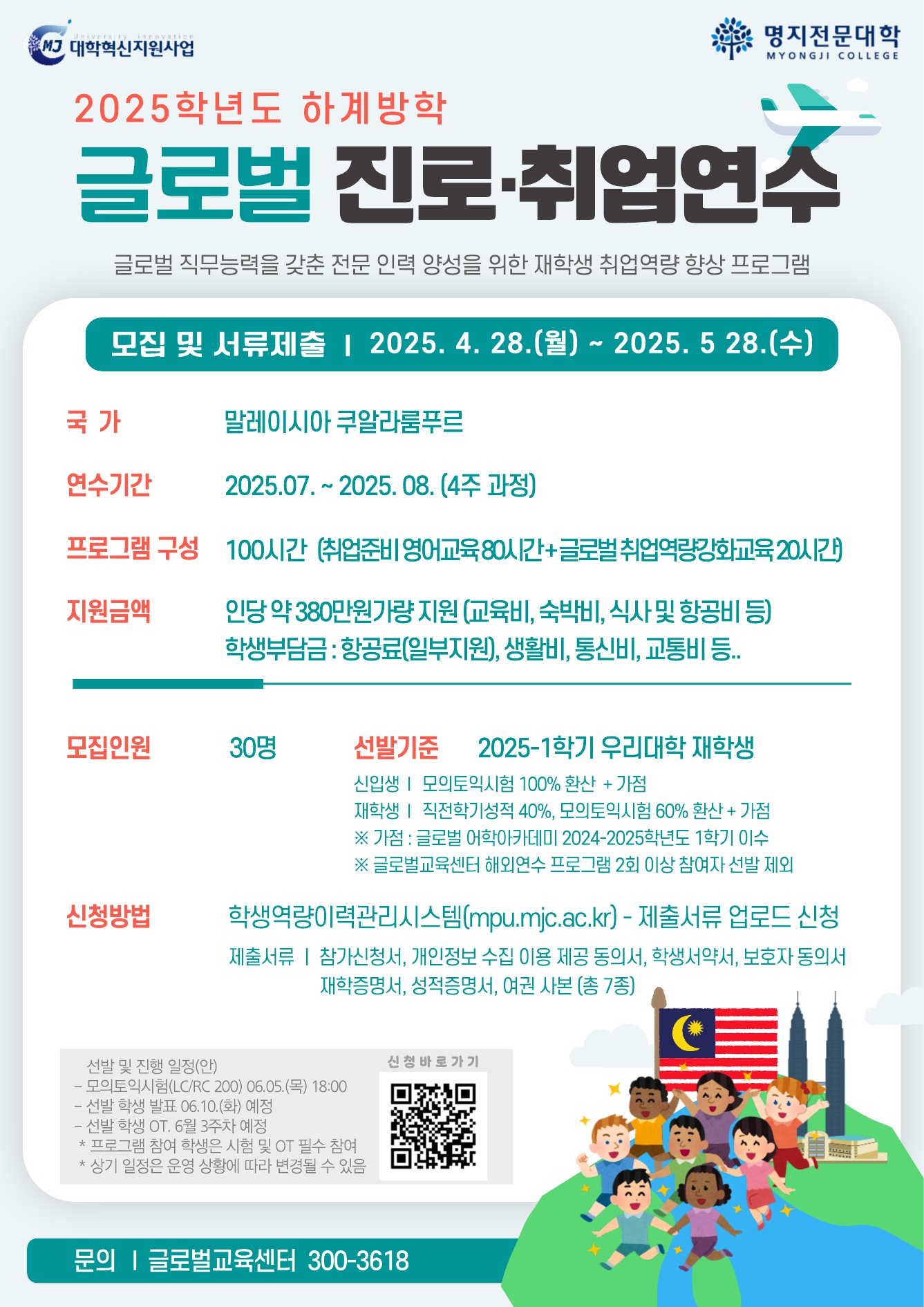 우리대학 재학생들의 글로벌 역량 강화를 위한 글로벌 진로취업연수 프로그램 참여 학생을 모집합니다.
